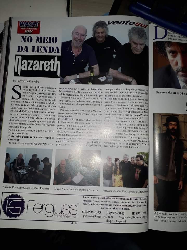 In 2012, Banda Nazareth played at Ilha Comprida sp, there were 3 hours of show and 4 more songs, they liked it so much that they took 5 days off for the next show, it was awesome, there's even a local Revistaventosul that did an interview with them.